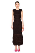 The Breeze Knit Midi Dress combines refined tailoring with contemporary edge. Crafted from textured knit, this midi silhouette features a sleek slim fit enhanced by structured shoulder pads for a polished, commanding presence. A sculptural metal zip adorns the back, adding architectural interest, while playful fringe at the hem introduces movement and dimension. Perfect for elevated everyday wear or sophisticated evening occasions.