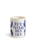 Hand-poured into a stunning vessel, the BURNING DESIRE candle radiates elegance and playful sophistication. Its striking royal blue ribbon design, meticulously detailed with 24K gold and platinum accents, reflects Ruan Hoffmann's ability to merge the everyday with the extraordinary. The soft vetiver fragrance encapsulates the theme of desire, making this piece a multisensory experience. Topped with a whimsical lid that complements the hand-sculpted design, this candle embodies the heart of the collaboration: playful, thought-provoking.