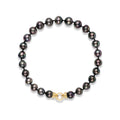The OAK Ancla Necklace combines large, luminescent gray Tahitian pearls strung on black silk with signature yellow gold tube accents. Secured with a push clasp, it offers a sophisticated statement and the option to personalize with your favorite charm.