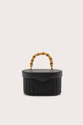 Elevate your style with the Gwyneth Top Handle, featuring a signature curved bamboo handle crafted in black rattan paired with creamy leather accents. Its smooth black leather exterior offers a refined look, while the magnetic closure ensures secure and easy access. Fully lined for added durability and elegance, this handbag seamlessly blends natural textures with sophisticated design.