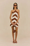 The Nelson Dress showcases a striking halter mini silhouette crafted from sponge-yarn chevron jacquard that sculpts the body with bold, geometric lines. The textured knit creates dimensional visual interest while the halter neckline offers a refined, contemporary edge. Perfect for occasions calling for understated drama and architectural elegance.