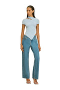 The Nessi Top features an asymmetrical silhouette with a mock neck and short sleeves for effortless everyday wear. Distinctive fabric-covered rings add visual interest, while ottoman stitching provides textural depth. The handkerchief hem creates a flowing, relaxed finish that works beautifully layered or worn solo. A versatile knit piece that balances modern design with comfortable, wearable style.