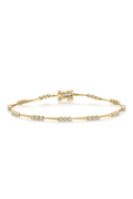 Crown-set diamonds frame elegant tapered bars in this refined eternity bracelet, creating a seamless flow of light around your wrist. Diamond accents grace the secure box clasp, adding the perfect finishing touch. Crafted in 14K gold with .48CT of diamonds, this timeless piece balances classic design with contemporary sophistication—a versatile essential for any jewelry collection.