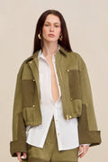 The Anders Jacket combines classic cotton twill craftsmanship with modern colorblock accents in a refined cropped silhouette. Featuring a smooth front zipper closure, this jacket elevates everyday utility wear with subtle design details. Pair it effortlessly with the matching Wynn Pant for a coordinated yet sophisticated look.