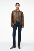 The Eugene Leather Jacket exemplifies timeless menswear craftsmanship. Constructed from supple calfskin leather, this bomber-style piece combines classic aviation heritage with contemporary refinement. The streamlined silhouette features a front zip closure and thoughtfully placed front pockets, delivering both functionality and understated elegance. Versatile enough to elevate casual wear or layer over tailored pieces, this jacket becomes an essential foundation for a discerning wardrobe.