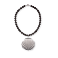 Discover the Holbox Necklace, a striking statement piece that marries artisanal craftsmanship with modern elegance. Luminous red garnet beads frame a substantial rhodium-plated brass shell pendant, creating a captivating focal point. The signature magnetic clasp ensures effortless fastening without compromising on style.