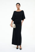 The Amelie Sweater Dress combines timeless elegance with modern comfort. Crafted from a luxurious wool blend, this boat neck maxi features graceful dolman sleeves that drape beautifully. Strategic ruching at the hips and low center back creates a refined silhouette that flatters the figure while maintaining an effortlessly chic aesthetic. Perfect for elevated everyday wear or sophisticated occasions.