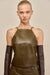 The Juji Top features a sleek halter design crafted from supple sheep leather, delivering a refined yet bold statement. Its high neck and open back secured with a buckle closure create a sophisticated silhouette that combines modern edge with timeless elegance.