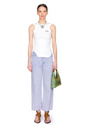 The Ren Jean embodies effortless elegance with its high-rise, wide-leg silhouette that flatters and elongates. Featuring a sculpted waist, relaxed hip fit, and flowing leg, this timeless piece transitions seamlessly from day to evening. The distinctive medium overdyed lavender wash delivers a softly saturated, contemporary hue that feels both refined and approachable. Constructed from a rigid cotton blend incorporating regenerative and recycled fibers, it balances sustainable craftsmanship with a luxuriously soft hand feel and enduring structure.