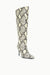 The Sebastian High Heel Boot commands attention with its sleek silhouette and luxurious finish. This knee-high style features a sharp pointy toe and striking snake embossed leather that catches the light beautifully. Perfect for elevating any ensemble, from evening wear to polished daytime looks, this boot delivers both edge and elegance in one statement piece.
