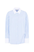 The Diana Shirt brings European elegance to your everyday wardrobe. Crafted in Italy, this refined piece features a multicolor striped blue base accented by crisp white contrast at the collar and sleeve cuffs—a timeless combination that transitions effortlessly from casual to polished occasions. The structured design and quality construction make it a versatile staple for layering or wearing solo.