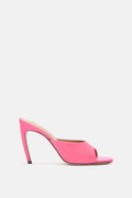 The Betta' Mule in warm fuchsia satin combines sophistication with versatility. Its peep toe design and luxurious satin finish make it an elegant choice for any occasion, from casual to formal wear.