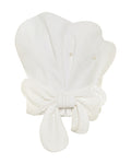 Elevate your elegance with the Luz Bustier, crafted in luxurious white velvet. Its scalloped edges offer a refined silhouette, while delicate bow and pearl details add a timeless touch of sophistication. Perfect for special occasions, this bustier combines classic charm with modern allure.