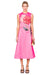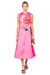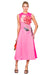 Elegant painterly peonies in cream and vibrant red bloom across a striking fuchsia canvas on this premium sleeveless midi dress. Featuring exclusive LEO LIN placement embroidery, a round neckline, and fitted waist that flows into an A-line silhouette, this piece makes an unapologetically romantic statement. The invisible back zip closure and full lining ensure a polished finish. Perfect for those who embrace dramatic elegance.
