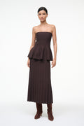 The Evie Top combines timeless elegance with modern craftsmanship. Its compact knit design features subtle ottoman stitch detailing at the waist, enhancing the silhouette with refined texture. The graceful peplum detail adds a sophisticated touch, creating a flattering shape that complements any ensemble. Pair it with the matching Lena Skirt.