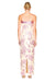 Make an entrance in this stunning strapless maxi dress, adorned with an ivory and pink floral print that captures timeless elegance. The sweeping silhouette and refined neckline create a graceful, elongated line ideal for formal occasions and special events. A versatile investment piece that transitions from evening affairs to destination celebrations with understated sophistication.