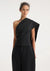 This one shoulder cape top features a fitted design enhanced by an asymmetric sash that drapes gracefully over the shoulder, delivering a striking silhouette perfect for elegant evening occasions. Its sculpted balance of structure and fluidity creates a refined, sophisticated look that makes a confident statement.