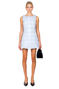 The Pippin Quilted Rosette Mini Dress is crafted from a sleek black nylon quilted fabric adorned with delicate, hand-sewn rosettes. The subtle ruffle hem adds a charming finish, while an invisible zipper at the back ensures a seamless fit. This sophisticated design effortlessly blends texture and elegance for a refined, standout look.