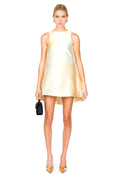 Radiant yellow satin embraces an effortless A-line silhouette, adorned with delicate floral motifs that whisper understated elegance. This sleeveless design moves with graceful fluidity, crafted from substantial heavy satin that drapes beautifully and holds its shape throughout the day. Perfect for elevated occasions or refined everyday moments, it strikes the ideal balance between timeless sophistication and contemporary charm.