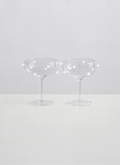 Indulge in the playful elegance of the Pomponette champagne coupes. Crystal clear glasses adorned with milky white bubbles, perfect for any celebration. Toast to sophistication and style with this must-have duo.