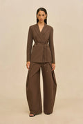 The Arden Pant combines tailored sophistication with contemporary style. Constructed from midweight viscose suiting, this piece features a distinctive barrel leg silhouette that creates a modern, relaxed fit through the hip and thigh. Refined pleated details at the waist add dimension and structure, making it an effortless choice for elevated everyday wear or professional settings. Versatile enough to pair with everything from crisp button-ups to oversized sweaters.