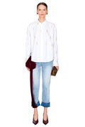 The Arin Jean offers a sleek silhouette with its slim cuff design, elegantly complemented by a unique velvet bustle detail. Perfect for those seeking a refined yet distinctive look, these jeans blend classic tailoring with a subtle touch of luxury, enhancing your wardrobe with sophisticated style.