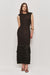 The Breeze Knit Midi Dress combines refined tailoring with contemporary edge. Crafted from textured knit, this midi silhouette features a sleek slim fit enhanced by structured shoulder pads for a polished, commanding presence. A sculptural metal zip adorns the back, adding architectural interest, while playful fringe at the hem introduces movement and dimension. Perfect for elevated everyday wear or sophisticated evening occasions.