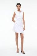 The Callie Mini Dress combines contemporary design with effortless elegance. A high neckline frames the shoulders while ruched waist detailing creates definition and visual interest. Twisted sleeves add a modern touch, and the asymmetrical hem delivers an unexpected edge that elevates any look. The back zip closure makes dressing simple and seamless. Versatile enough for elevated everyday wear or dressed up for special occasions.