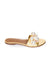 Effortless elegance meets coastal charm with these gold leather flat slide sandals. Adorned with lustrous pearl and delicate seashell embellishments along the strap, each pair captures a refined, beachy aesthetic. The smooth leather construction ensures comfort for all-day wear, while the understated flat sole provides a polished foundation for any warm-weather ensemble. Perfect for transitioning from poolside to dinner, these slides bring a touch of seaside sophistication to your wardrobe.