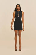The Doms Dress combines refined elegance with contemporary edge. This knit mini dress features lustrous faux pearl embellishments cascading across the chest, paired with strategic cutouts for a modern silhouette. The soft knit blend drapes beautifully while maintaining structure, while a discreet back zipper ensures an effortless fit. Perfect for elevated evenings or standout occasions where understated luxury meets bold design.