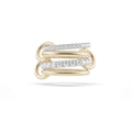 The Halley showcases an elegant all-gold design with four rings in varied gauges, combining solid bands and pavé-set white diamonds or emerald eternity bands. Its harmonious silhouette is highlighted by alternating textures, connected by three 18k yellow gold orbiting links. Each piece is meticulously handcrafted in Los Angeles, offering timeless sophistication and artisanal quality.