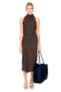 Elevate your wardrobe with this Jean Skirt, where contemporary design meets luxurious comfort. Crafted from our signature fluid gingham—a sumptuous viscose blend infused with Tencel and nylon—this piece drapes beautifully while maintaining breathability. The high-rise, midi silhouette showcases an artfully gathered knot detail at the hip and an asymmetrical hem that celebrates the fabric's natural fluidity. Rendered in a striking black and tan check, this skirt transitions effortlessly from day to evening, offering both movement and refined elegance.