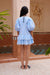 The Maizy Embroidered Mini Dress captures effortless elegance with its soft light blue hue and dramatic balloon sleeves that make a refined statement. Delicate white lace trim and intricate embroidery details elevate the design, while the double-layered skirt adds graceful movement and dimension. Perfect for occasions calling for understated sophistication with a touch of whimsy.