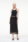 The Mer Skirt is a sheer wrap skirt adorned with all-over beading and delicate accent charms that catch the light beautifully. Featuring an adjustable tie closure, it molds to your body for a flattering silhouette. Versatile and effortless, wear it as a beach coverup or layer it over your favorite pieces for that coveted coastal aesthetic. A statement piece that transitions seamlessly from poolside to evening.