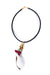 Necklace with a white pendant, red accents, and gold elements on a white background