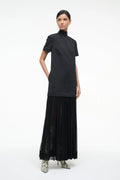 The Pia Dress reimagines effortless elegance with its striking silhouette. Constructed from structured grosgrain with a flowing chiffon overlay, this tent maxi dress drapes with understated luxury. The short sleeves and neck tie create a refined neckline, while the open back adds an unexpected touch of allure. Perfect for elevated occasions where timeless style meets contemporary design.