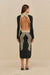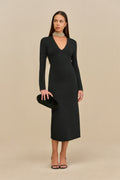 The Shyla Knit Dress combines refined elegance with modern design. This midi silhouette features long sleeves for versatile styling, while a distinctive woven neck strap adorned with pearls draws the eye upward. The true showstopper is the open back, where a delicate bow detail creates an unexpected moment of sophistication. Perfect for elevated occasions or when you want to make a graceful statement, this knit dress balances coverage with allure.