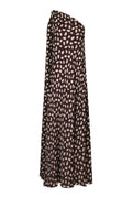 Effortless elegance meets versatile style in this wine and ecru silk maxi dress. Crafted from fluid double georgette, the one-shoulder silhouette drapes beautifully for a sophisticated, modern look. Transition seamlessly from evening to day—pair with statement earrings and strappy heels for a polished night out, or style with flat sandals and bold cuffs for an elevated casual aesthetic. A timeless piece that adapts to your mood and occasion.