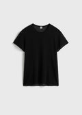 Effortless sophistication meets everyday wear in this TOTEME essential. Crafted from luxurious silk and finished with refined rolled edges, this tee transcends the ordinary with its understated elegance. The fluid drape and subtle detailing elevate any wardrobe, whether paired with tailored trousers for the office or denim for a polished casual look. A timeless piece that bridges the gap between comfort and refinement.