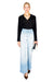 Black V-neck top in heavyweight crepe de chine with gathered neckline detailing, distinctive overlong cuffs, and exposed side seams for modern sophistication.
