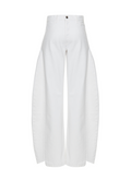 Elevate your denim collection with these striking white jeans, featuring a high-waisted silhouette and flowing wide-leg cut. The exaggerated side panel inserts add architectural interest and contemporary flair, creating a bold statement piece that transitions effortlessly from casual to refined. Perfect for those seeking distinctive style with timeless appeal.