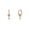 Crafted in 18k yellow gold, the Zahra Hoop Earrings feature a sleek silhouette enhanced by three delicate annulets. A white diamond drop (.22 carats) adds subtle sparkle and graceful movement, elevating their timeless elegance. Individually handmade in Los Angeles, these earrings combine refined design with expert craftsmanship for a sophisticated statement piece.